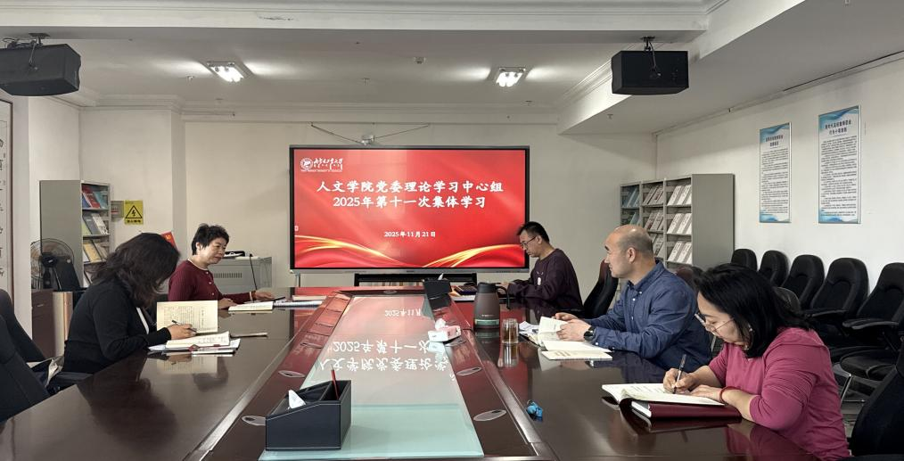 11月21日,人文学院党委理论学习中心组召开2025年第十一次集体学习会议,深入学习贯彻习近平总书记关于加强社会工作、提升社会治理效能的重要论述。学院党委书记马利强主持会议,理论学习中心组成员参加学习。