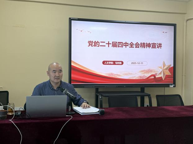 12月11日,人文学院党委召开党的二十届四中全会精神宣讲会。学院领导班子成员、党委委员、各党支部书记、系主任及师生代表40余人参加。学院党委书记马利强主讲。