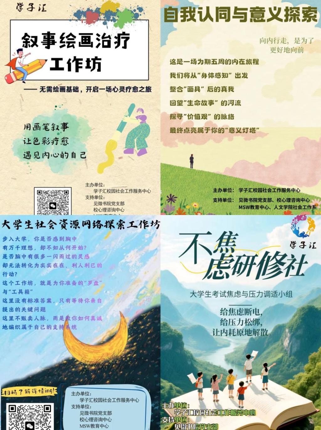 人文学院“学子汇”社会工作服务中心,简称“学子汇”,是一所校内模拟社会工作服务机构。2025年12月,见微书院党支部联动社会工作专业,以学子汇为依托,面向全校师生开展社会工作实践活动20余次,服务共计200人次。