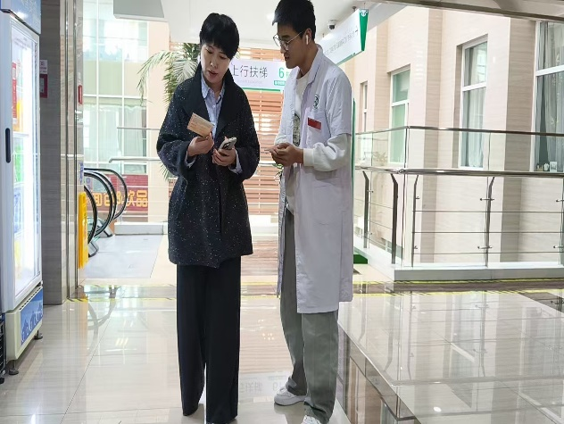 在3月17日,“国际社工日”,以及随后的几天里,实习生王晶楠与晁永杰在门诊二、三楼及住院部区域,面向就诊患者、家属及住院患者开展了广泛的宣传活动。她们通过发放医务社工宣传卡片、现场讲解等方式,围绕服务内容,用通俗易懂的语言向群众普及医务社工知识,解答就医过程中的困惑与疑问。学生王晶楠认为,“本次实习不仅拉近了与群众的距离,更用实际行动诠释了专业服务中的人文关怀,实习让自己坚信,社工是温暖而有力的存在,期待自己未来也能如此传递温度”。学生晁永杰认为,“通过普及服务内容,能让大家更直观地了解社工角色,感受社会支持力量,这也是在实践中践行社工理念、提升服务意识的重要一步。”